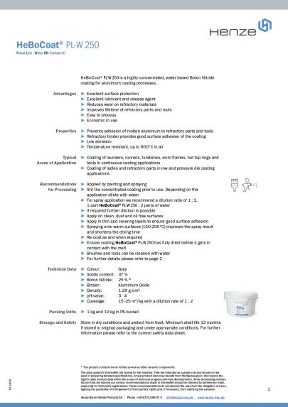 To wysoce skoncentrowana zawiesina azotku boru na bazie wody. Spoiwa ogniotrwałe zapewniają dobrą przyczepność, także w wysokich temperaturach.