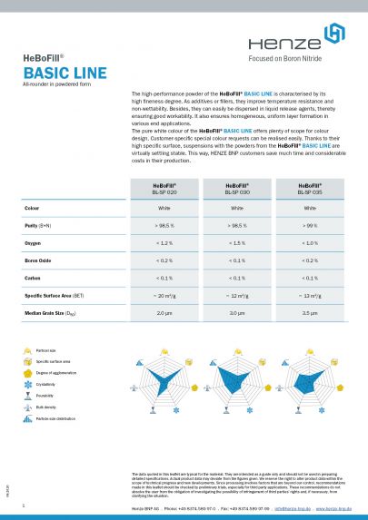 HeBoFill® BL-SP 035 to drobny, prawie pozbawiony aglomeratów proszek o wysokiej czystości i wysokiej krystaliczności. Dodatkowymi zaletami tej jakości są bardzo dobre właściwości smarne i separujące.